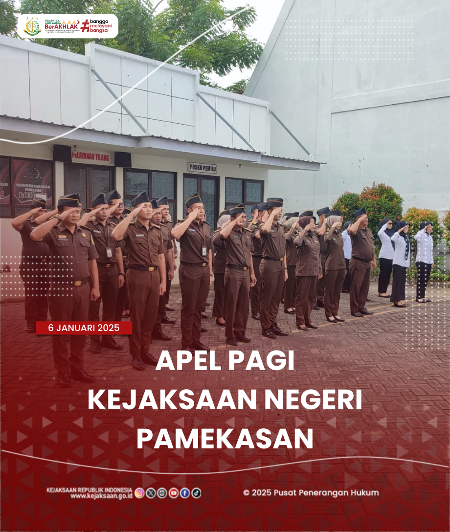 Senin, 06 Januari 2025, Bertempat di Halaman Kantor Kejaksaan Negeri Pamekasan dilaksanakan kegiatan Apel Pagi yang dipimpin oleh Kepala Sub Bagian Pembinaan dengan diikuti oleh seluruh Pegawai dan PPNPN Kejaksaan Negeri Pamekasan.