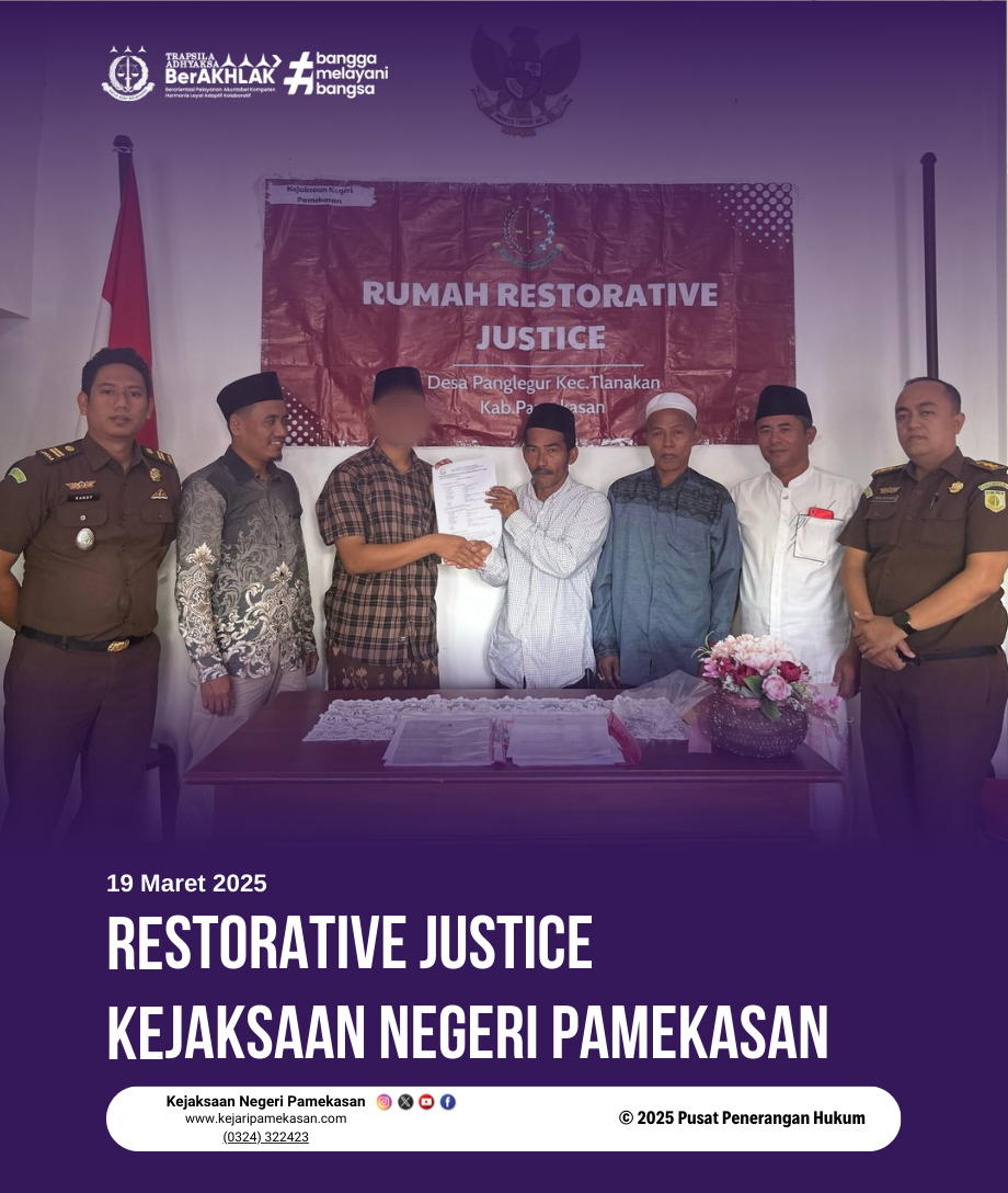 Rabu, 19 Maret 2025, Kejaksaan Negeri Pamekasan melaksanakan upaya perdamaian atas perkara AY yang melanggar pasal 310 ayat (4) UU RI No. 22 Tahun 2009 tentang Lalu Lintas Angkutan Jalan yang dipimpin oleh Jaksa Fungsional Kejaksaan Negeri Pamekasan bertempat di Rumah RJ Kejaksaan Negeri Pamekasan.