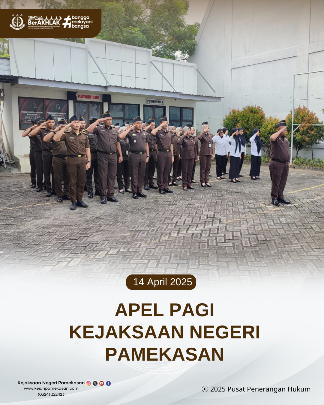 APEL PAGI admin April 14, 2025 1 min read Senin, 14 April 2025. Kejaksaan Negeri Pamekasan melaksanakan Apel Pagi Rutin yang dipimpin oleh Kepala Seksi Perdata dan Tata Usaha di Halaman Kantor Kejaksaan Negeri Pamekasan Continue Reading Previous Previous post: PIDUMNext Next post: RAPAT Leave a Reply Cancel replyYour email address will not be published. Required fields are marked *Comment * Name * Email * Website Save my name, email, and website in this browser for the next time I comment. Related News HUT RI-80 HUT RI-80 August 17, 2025 August 7, 2025